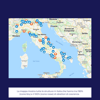 Secondo l'indagine "Mai Dati" condotta da Chiara Lalli e Sonia Montegiove che abbiamo presentato alla Camera insieme all' Associazione Luca Coscioni a maggio 2022, in Italia ci sono almeno 31 strutture (24 ospedali e 7 consultori) tra le 180 prese in esame che hanno il 100% di obiettori di coscienza per medici ginecologi, anestesisti, infermieri o OSS. Ci sono quasi 50 strutture con una percentuale superiore al 90% e oltre 80 con un tasso di obiezione superiore all'80%. E anche nelle strutture dove è possibile abortire, quanto è ampia la scelta?