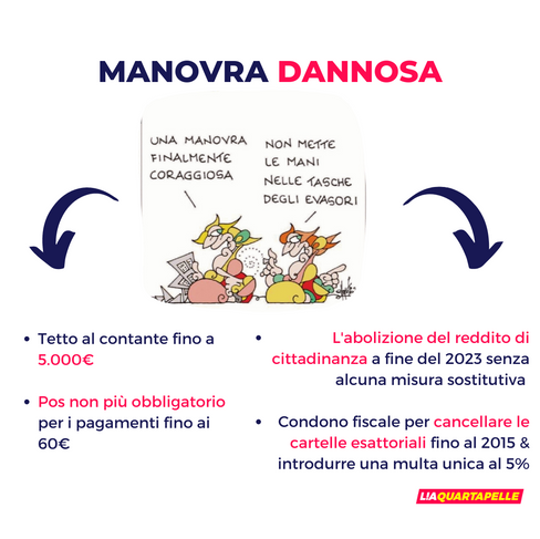 Martedì 22 novembre la Premier Giorgia Meloni ha tenuto una conferenza stampa in cui ha presentato la manovra di bilancio per il 2023. In quell'occasione Meloni ha parlato di una manovra 'coraggiosa, coerente e che scommette sul futuro.' Io invece penso che quella presentata sia una manovra iniqua, insufficiente e dannosa per il nostro Paese.